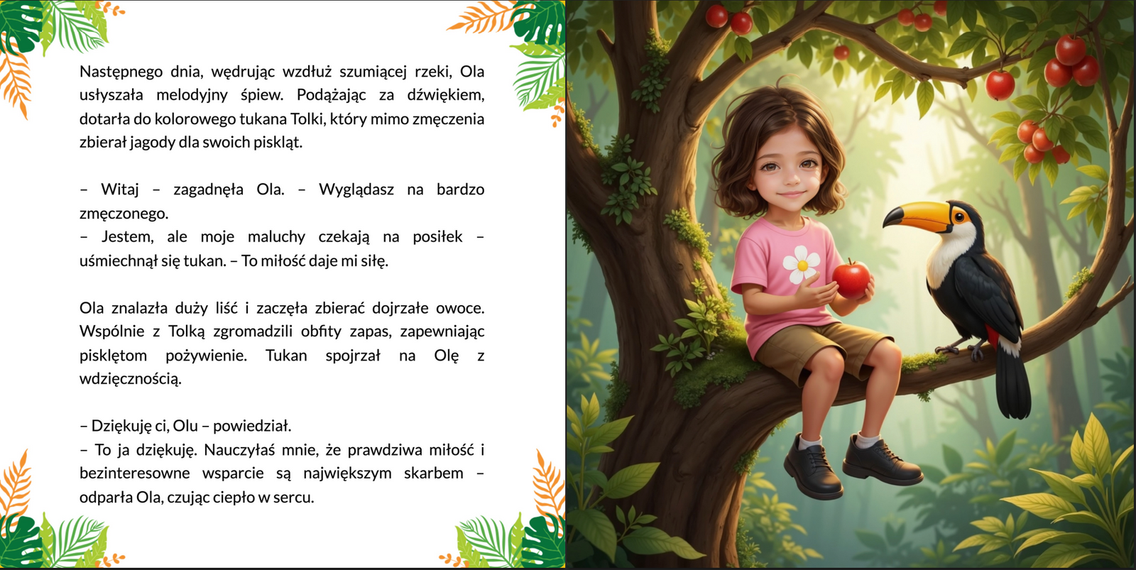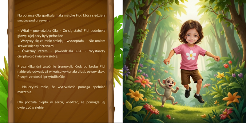 W dobie sztucznej inteligencji korzystamy z AI wyłącznie do personalizacji fotografii – automatycznie podmieniamy zdjęcie bohatera na zdjęcie Twojego dziecka – natomiast samą treść opracowujemy i szlifujemy ręcznie. Wspieramy się nowoczesnymi narzędziami, ale to my nadajemy historiom ostateczny kształt, dbając o każdy detal i ciepło płynące z opowieści.